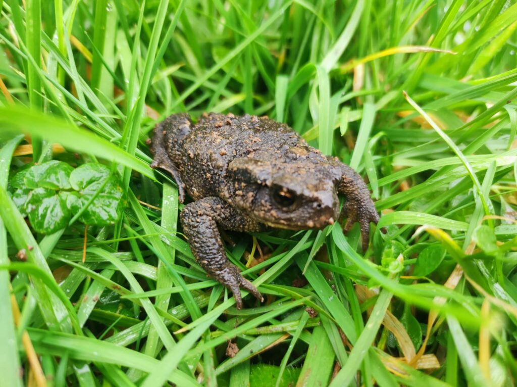 Lors de notre plantation de framboisiers sur le terrain de Mosles mardi dernier, un timide crapaud a fait son apparition, entre deux trous creusés à la bêche. Il s’agit soit du crapaud commun (Bufo bufo) , soit du crapaud épineux (Bufo Spinosus), espèce longtemps considérée comme une sous-espèce du crapaud commun jusqu’en 2013, après qu’une étude phylogénétique* le classe comme espèce à part entière. Ces deux crapauds, partageant une frontière géographique perméable en France, coexistent sur le Calvados. La détermination de l’espèce se base sur des critères bien précis, rendant son identification compliquée. Ils partagent néanmoins des caractéristiques communes. Amphibiens essentiellement nocturnes, ils passent l’hiver au chaud dans un terrier délaissé, sous un tas de pierres ou bien encore sous du bois. Ils sortent de leurs cachettes dès février pour rejoindre des plans d’eau où la reproduction s’effectuera . Animaux aux régimes variés, ils s’attaquent à bon nombre d’invertébrés tels que les limaces, les chenilles ou bien encore les vers de terre.